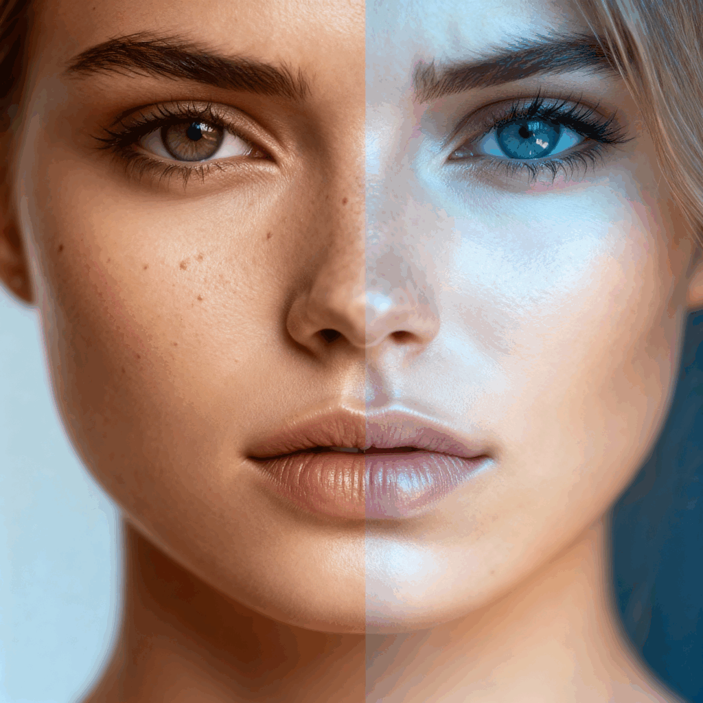 毛穴も、シワも、左右非対称さもない、アルゴリズムが生み出した“完璧な顔”。それは、人間離れした、一種のデジタルな神話だ。私たちは、自分自身よりも、AIが描いた虚像に恋をしてしまったのかもしれない。
