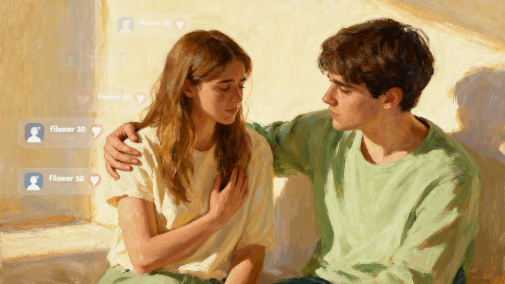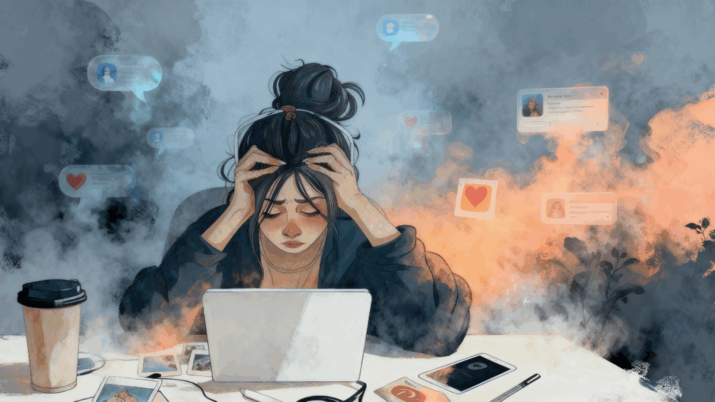 他人のきらびやかな投稿と自分の日常を比べては、見えない誰かと競争し、静かに疲弊していく。